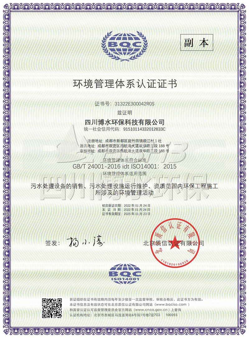 2、環境管理體系認證證書
