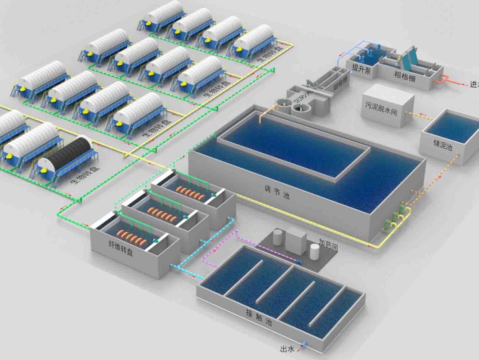 ◇ 固液分離→水解酸化池/調(diào)節(jié)池→氣浮機(jī)→ABR折流厭氧→接觸碳化→接觸硝化→高效沉淀→多介質(zhì)過濾器/脫泥→消毒→達(dá)標(biāo)排放;